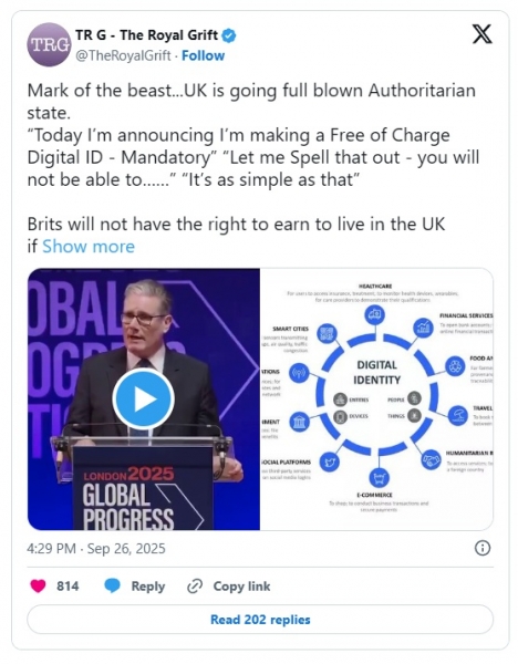 Sada svim silama namjeravaju progurati digitalni identitet, unatoč široko rasprostranjenom otporu među stanovništvom Ujedinjenog Kraljevstva. Iako ga Tony Blair nije uveo u svoje vrijeme, sada se on provodi u novom obliku.
