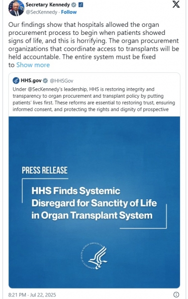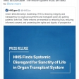 Our findings show that hospitals allowed the organ procurement process to begin when patients showed signs of life, and this is horrifying. The organ procurement organizations that coordinate access to transplants will be held accountable. The entire system must be fixed to ensure that every potential donor’s life is treated with the sanctity it deserves.