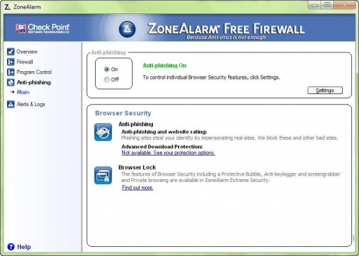 ZoneAlarm Firewall Free-has gotten quieter and more effective, and should be considered an excellent tool for replacing the adequate default Windows firewall with a stronger option that includes better outbound protection, antiphishing guards, and ZoneAlarm's behavioral detection network.