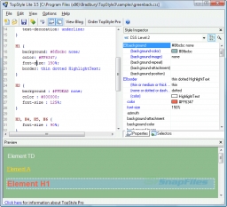 TopStyle Lite is a simple CSS editor that allows you to edit and create CSS style sheets. It is based on TopStyle Pro but only contains a small subset of features aimed at casual users that just need basic CSS editing features.