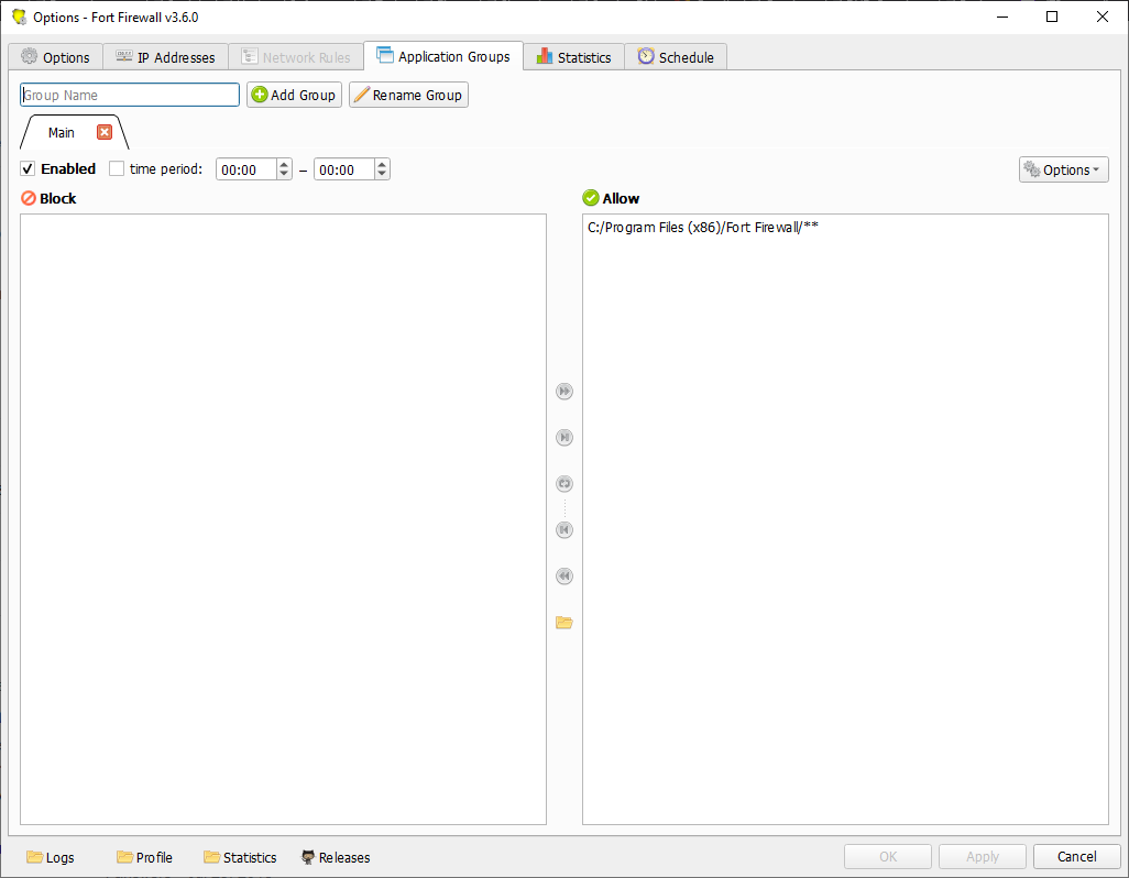 Fort Firewall is able to filter by SvcHost.exe service names and offers support for wildcards in app path names. Thanks to this feature, you can monitor the processes that access the network on your system. Once you have filtered traffic by network addresses, you will also be able to create groups to more effectively monitor the services accessing the Internet.