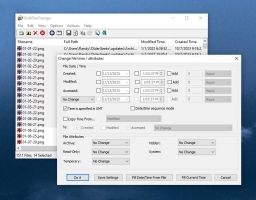 BulkFileChanger enables you to change files dates (last access, modified, created) and attributes for multiple files, even if they are located in different folders. You can create a list of files to be processed by copy/paste, drag&;drop or via wildcard path. BulkFileChanger can also be used to call an external program to which it will pass the file list on as a parameter.