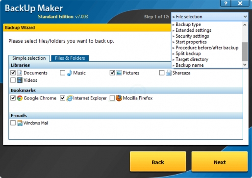 BackUp Maker is a personal backup tool that can create backups in ZIP format. It can optionally backup the files directly to a CD-RW or DVD drive, a local folder, or a remote FTP server.