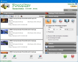 Fotosizer is a batch image resizing tool that you can use to create resized copies of your images for sharing by email or uploading to websites. You can set custom height/width values or choose from several preset sizes. The resized versions are saved to a folder of your choice and can optionally be renamed to reflect the dimensions in the file name.
