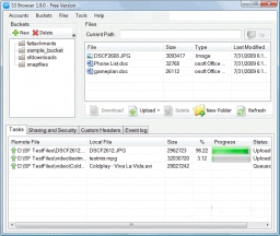 S3 Browser is a free client interface for users of the Amazon S3 and CloudFront service. It provides an easy to use GUI to manage your storage buckets and allows you to upload and download files.
