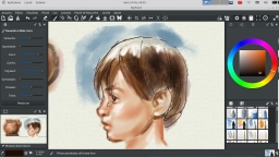 Its brush engine is versatile and configurable, and it provides useful, productive tools. The standard brushes can emulate traditional media like charcoal, pencils, ink, or paint. But you don’t have to limit yourself to just the standard ones. It’s easy to make expressive, artful new brushes that don’t respond like anything conventional.