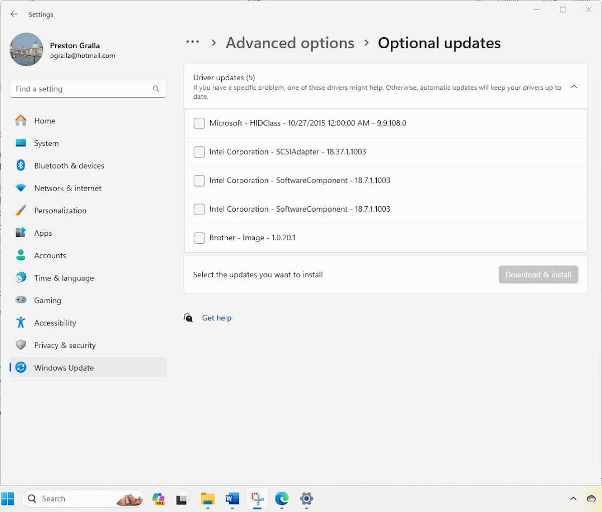 You can use the Device Manager to update all your drivers this way. That’s time-consuming, so consider asking Windows to do the work for you. To do it, launch the Settings app (pressing the Windows key + I is a good shortcut for doing it) and select Windows Update from the left pane. ;; Select Advanced Options >;; Optional Updates. You’ll see a list of all the updates Windows has found but hasn’t installed. Select any of the drivers you want to install, then click Download &;; install.