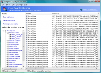 Eusing Free Registry Cleaner enables you to scan your registry for invalid entries. It provides a list of all errors that were found, and you can choose to remove all items, or only selected errors. ..