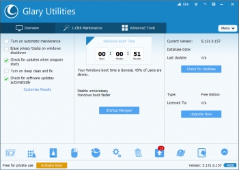 Glary Utilities is designed for both novice and professionals. User-friendly interface shows clear & detailed directions. For novice, all work can be done with just 1 or 2 clicks, while for professionals, ..