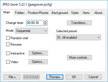 JPEG Saver is an image displaying screen saver that enables you to display your favorite photos as Windows screensaver with various transition effects. ..