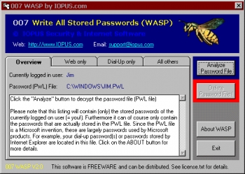 123 Write All Stored Passwords (WASP) will display all passwords of the currently logged on user that are stored in the Microsoft PWL file. ..
