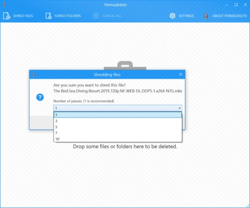 The interface of the application is simple and friendly. You must drag the file or directory into the application window and confirm the number of overwrite steps the application will perform to clear the data.
