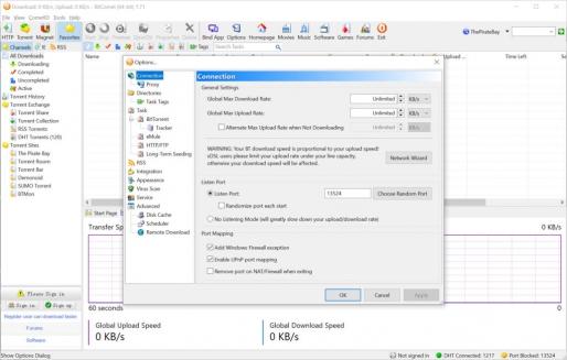 • Bandwidth Control: Allows you to set limits for download and upload speeds.