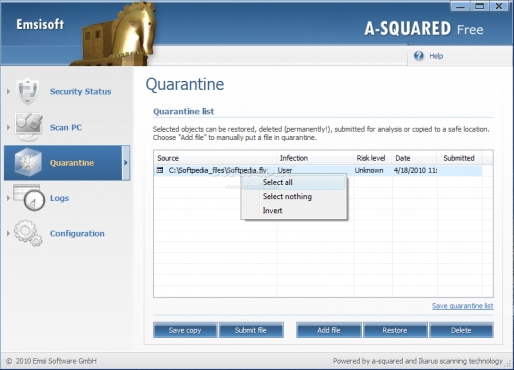 Note: As of July 2010, a-squared Free is no longer developed. Its feature-identical successor is Emsisoft Anti-Malware.