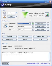 UwAmp represents a Wamp Server with Apache MySQL PHP and SQLite, and it comes with an very smart interface that offers various information, configuration and commands for the se...