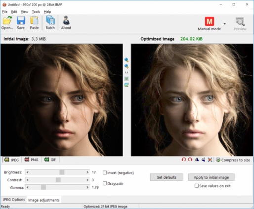 It has a simple and easy to use interface where you will be able to control compression, number of colors, metadata settings and much more, and select image format (JPG, GIF or PNG) for your output file.