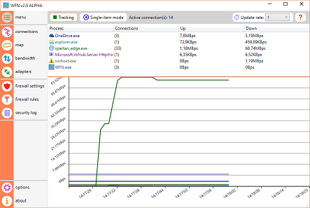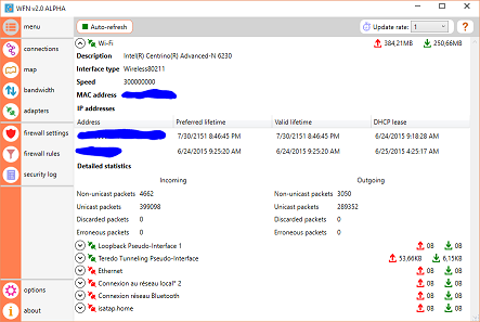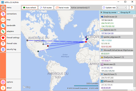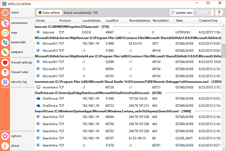 WFN started as a hobby around 2010 and is an "extension" to the embedded Windows firewall, offering real time connections monitoring, connections map, bandwidth usage monitoring...