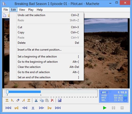 | Machete Lite does well for simple edits and audio extractions and cuts. But and that's a big BUT. You can't adjust audio volume. How many times I just wanted to increase or decrease volume on a poorly mixed video- too often. Nobody adds this simple function to their down and dirty freeware. |