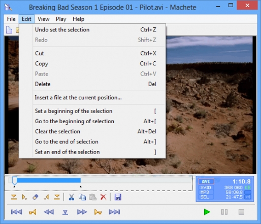 Machete Lite is a simple video editing tool to cut or join (AVI, WMF) video files. You can delete unnecessary fragments from a video file and also copy, move or mix multiple pieces, all without the need to re-encode the file. The program offers an easy to use interface with an integrated preview and timeline to select and mark the scenes to be edited.