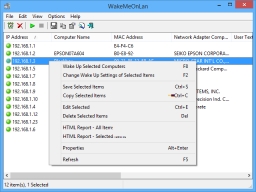 WakeMeOnLan enables you to turn on computers remotely be sending a Wake-on-LAN (WOL) packet to selected machines on the network. The program scans your network and automatically enumerates all nodes and their current status. Just select the device that you want to turn on and click a button.