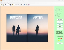 Photo Defects Remover is a easy to use pictures and photo correction utility. Remove a person from a photo, remove unwanted objects in your images. Main tasks of this application are removing of spots, dust, scratches, Red Eyes and other defects of images.