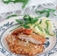 Svinjski zrezki cvrti v testu iz krompirja. ...