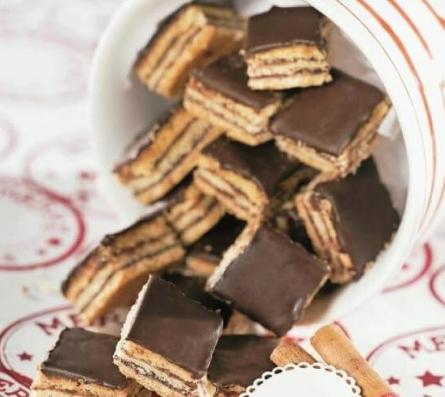 Čokoladno glazuro pripravimo tako, da čokolado za kuhanje in kokosovo maslo raztopimo v vodni kopeli in gladko zmešamo. Ko se kolač ohladi, ga prevlečemo s čokoladno glazuro. Še preden se glazura popolnoma strdi, kolač narežemo na primerno velike kocke.