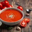 sol 10 srednje debelih paradižnikov 1 dl sladke smetane 1 strok česna (tanke rezinice) 2 žlici jedilnega škroba kanček limonovega soka 2 žlici grobo narezanih pehtranovih lističev 1 žlica hladnega masla