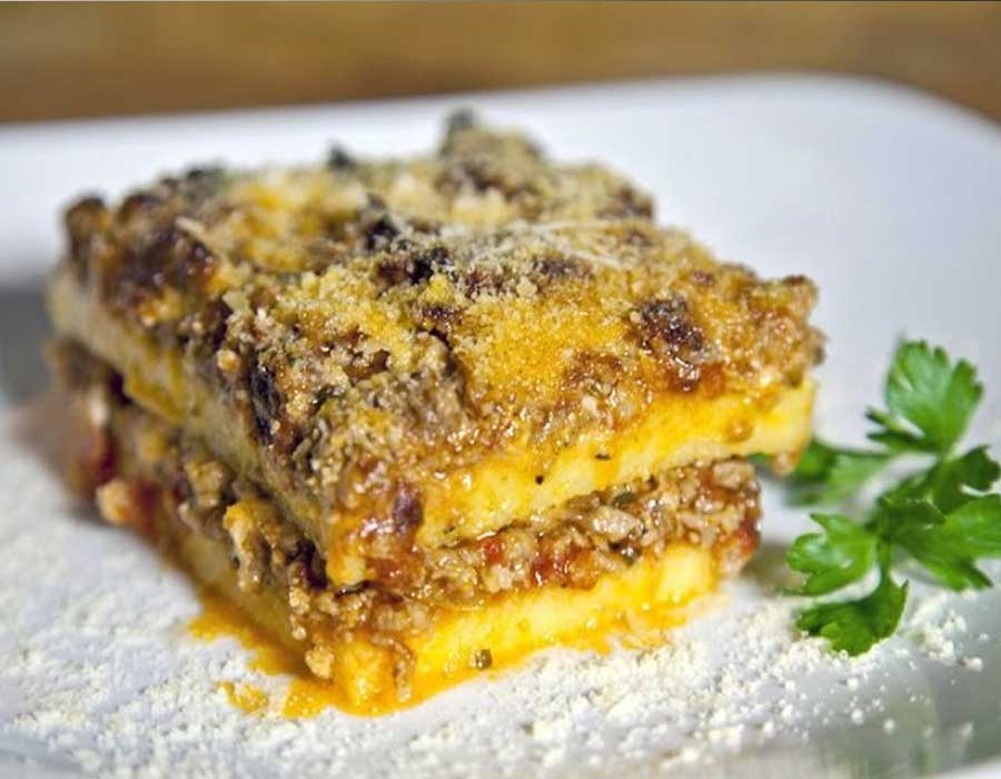 Ta jed združuje rustikalno preprostost koruzne polente in bogat okus tradicionalne mesne omake.