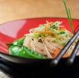 Ombolo narežemo na trakce, malo posolimo in na hitro opečemo na oljčnem olju.
