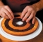 Nato sestavimo šahovnico tako, da iz 3 svetlih in 2 temnih obročev sestavimo prvo ploščo (začnemo s svetlim obročem) ter jo premažemo s četrtino nadeva.