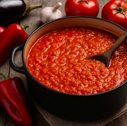 Če bi morali izbrati enega samega kralja balkanskih namazov, bi bil to gotovo ajvar. Njegova priprava je skorajda obred – najprej dolgotrajno pečenje mesnatih paprik na žaru ali v pečici, nato natančno lupljenje in odstranjevanje semen, sledi počasno kuhanje z oljem, dokler masa ne postane svilnato gladka.