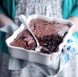 Sladkor muskovado pomešamo z vrelo vodo in kakavom. Tekočino počasi prelijemo po testu v pekaču (naj vas ne skrbi, videti bo zelo nenavadno). Pekač postavimo v pečico in pečemo pol ure, da se površina utrdi in postane hrustl. Notranjost sladice bo lepo vlažna z bogato čokoladno omako na dnu. Postrežemo takoj s stepeno sladko smetano ali vaniljevim sladoledom.