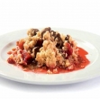 Mešanici dodamo še gozdne sadeže in dobro premešamo. Sadje pretresemo v globok pekač, ga poravnamo in malo potlačimo z dlanjo.