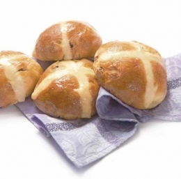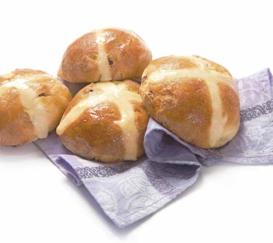 Pečico segrejemo na 200 °C. Medtem pripravimo pasto za okraševanje tako, da tri žlice moke zmešamo z dvema žlicama vode. S pripravljeno pasto napolnimo brizgalno vrečko in na vsak hlebček narišemo dve črti, ki se križata.