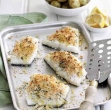 Paradižnikovo omako pripravimo tako, da na segreti žlici oljčnega olja eno minuto nežno pražimo strt česen in na drobno narezana stebla peteršilja. Dodamo paradižnik in preostali origano in dušimo 5 minut, da se češnjev paradižnik razpusti. Peteršiljeve lističe grobo narežemo, polovico jih damo v omako. Pečico segrejemo na 230 °C. Skorjico pripravimo tako, da v skledi zmešamo zdrobljeno feto s preostalimi peteršiljevimi lističi, limonovo lupino, origanom in zdrobljenim kruhom.