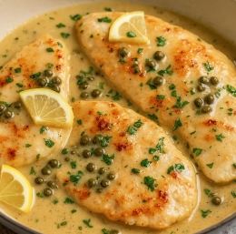 Piščančja piccata je tista jed, ki že ob prvem grižljaju prepriča z ravnovesjem okusov. Na eni strani je nežno popečen piščanec, na drugi pa živahna kombinacija limonine svežine, maslene omake in slanih kaprov. Čeprav ime zveni nekoliko prestižno, je priprava presenetljivo preprosta in primerna tudi za hiter večerni obrok.