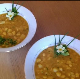 Naslednji dan vodo odlijemo, dodamo enako količino olupljenega in na manjše koščke narezanega starega krompirja ter olupljeno in na tanke rezine narezano rumeno kolerabo. Zalijemo s približno 2 litroma vode.