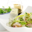 Špargljevo solato zmariniramo s šparglji, posujemo z opečenimi kruhovimi kockami in okrasimo z vrtno krešo.