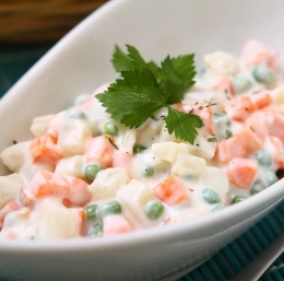 S prazniki prihajajo tudi praznične dobrote, ki se jih že vsi veselimo. Med drugimi tudi francoske solate, ki pa po izvoru ni prav nič francoska. Vsaka mama ima svoj recept in čisto vsak se vsaj malo razlikuje od drugega, mi pa vam predstavljamo ‘univerzalnega’.