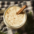 Novoletni punč iz jajčnega likerja prelijemo v praznične skodelice in okrasimo z muškatnim oreščkom.