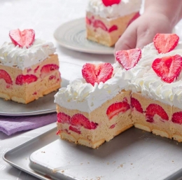 Po vrhu damo stepeno sladko smetano in okrasimo z jagodami.