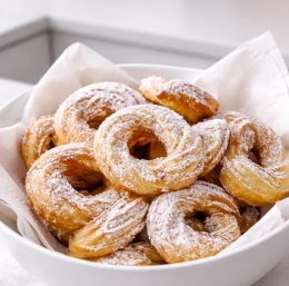 Preprosti, rahli in hrustljavi obročki iz testa so nostalgična sladica, ki vedno uspe in izgine s krožnika v trenutku.