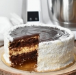 Kokosovo moko stresemo v globok krožnik (kjer ga bomo lažje zajemali z roko) in z njim obilno obložimo obod torte.