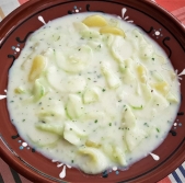 Pirini krompirjevi žganci s česnovo mastjo in ocvirki