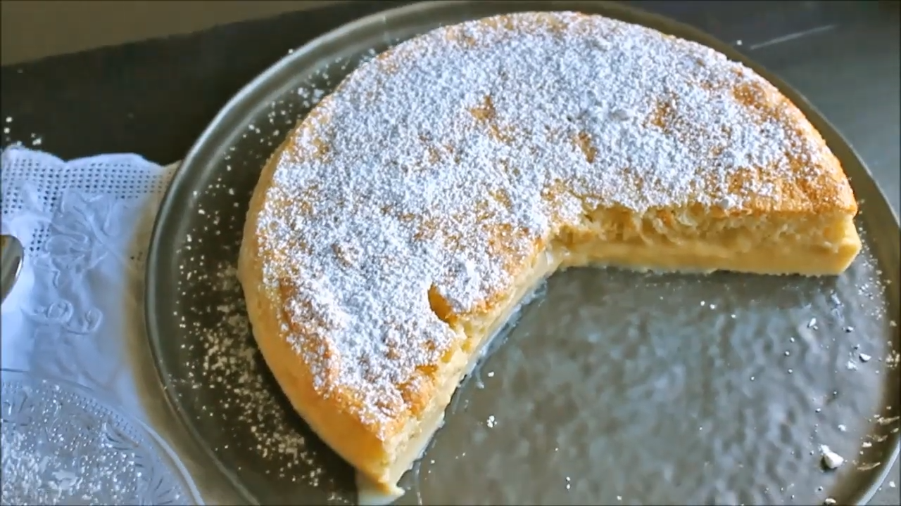 | Iz enega samega testa se med peko oblikujejo kar tri plasti – gosta spodnja plast, kremasta sredina in lahkotna zgornja plast, ki spominja na biskvit. Preprosta za pripravo, a vizualno in okusno osupljiva.