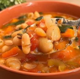 | Juhe se vedno priležejo k obrokom kot topla predjed, lahko pa tudi glavna, če zraven postrežemo kruhove cmoke ali solato in kruh. Tokrat smo za vas pripravili italijansko fižolovo juho, ki je prijetnega okusa in bo všeč tudi tistim, ki fižola ne obožujejo. Če jih moti konsistenca, ga preprosto spasirate.