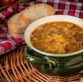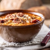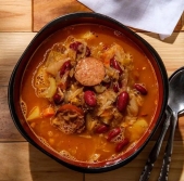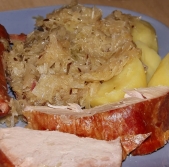 Prekajena gnjat s kislim zeljem in krompirjem iz rimskega lonca