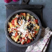 Svedrčki z jajčevci, pinjolami in rozinami po sicilijansko