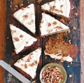 Kolač iz bučk in ameriških orehov z javorovim prelivom